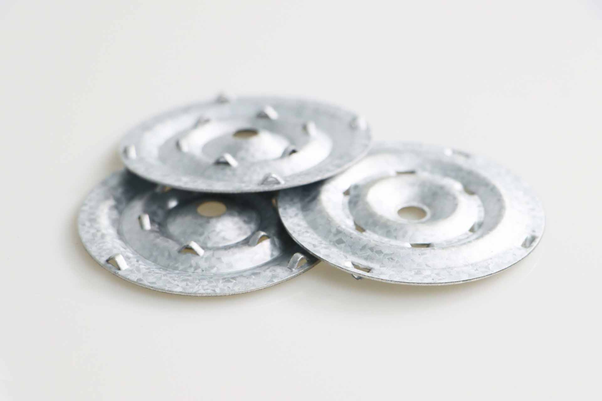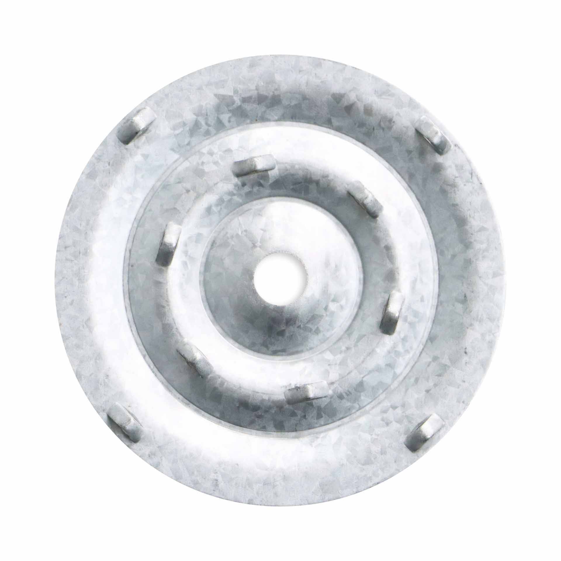 Galvalume Steel Round Barbed Plates are made of aluminum plus galvanized steel. The plate's rounded design and stiffening ribs provide excellent strength against the lifting forces of the wind. SRD (60 mm) seam plates are used for lap seam fastening. SRD (73 mm) insulating plates are used to fasten the insulation. These panels are designed to be insulated for use with fasteners in TPO/PVC roofing systems with ply-Iso. FM approved.